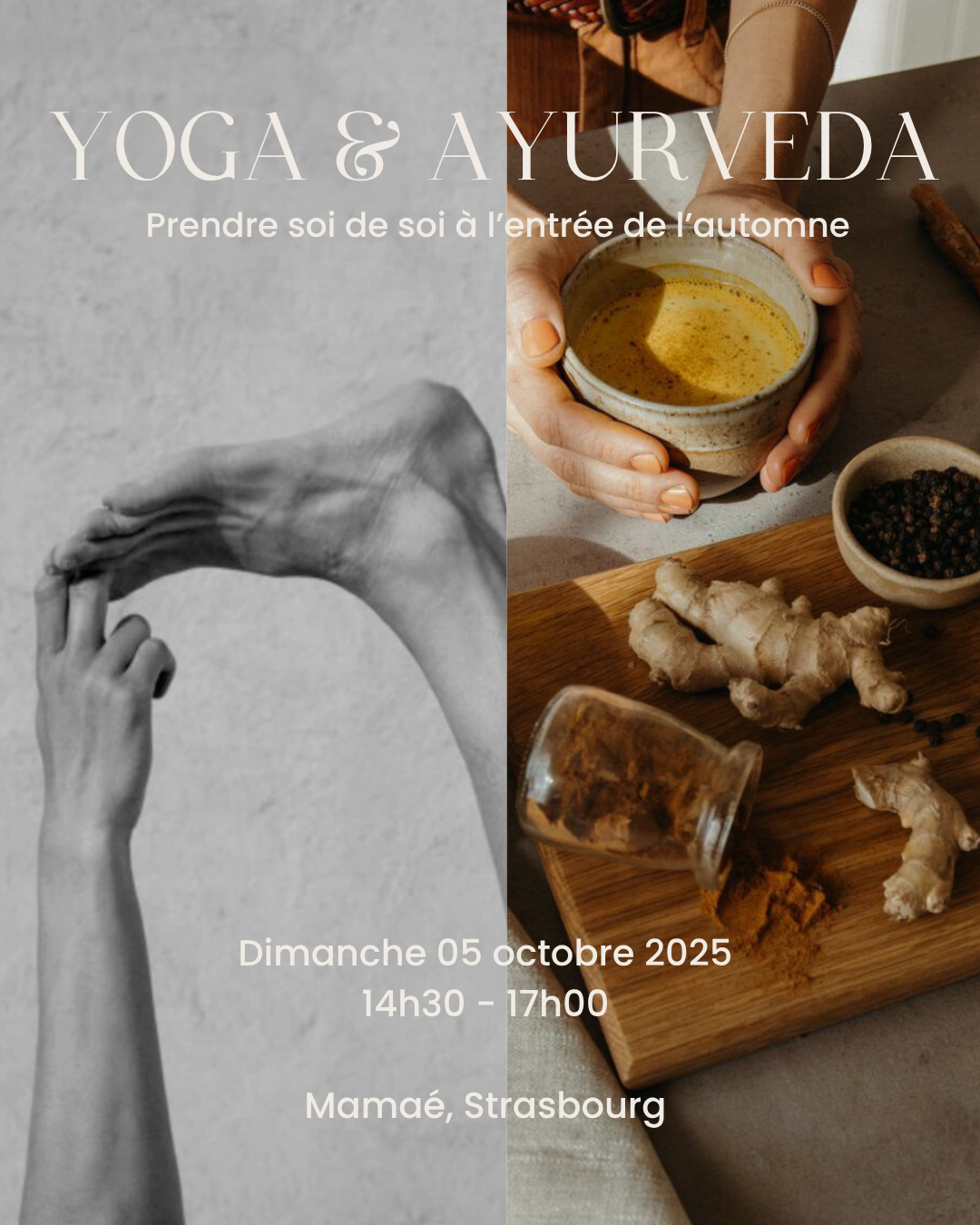 Au programme : - 1h30 de yin/yang et une relaxation sonore pour rééquilibrer corps et mental avec Esther@maisondesoiyoga - 45 min autour des rituels ayurvédiques d’automne et le dosha vata avec Élodie @elodie.clain.ayurveda, pour terminer par un moment cocoon autour d’une tisane chaude.